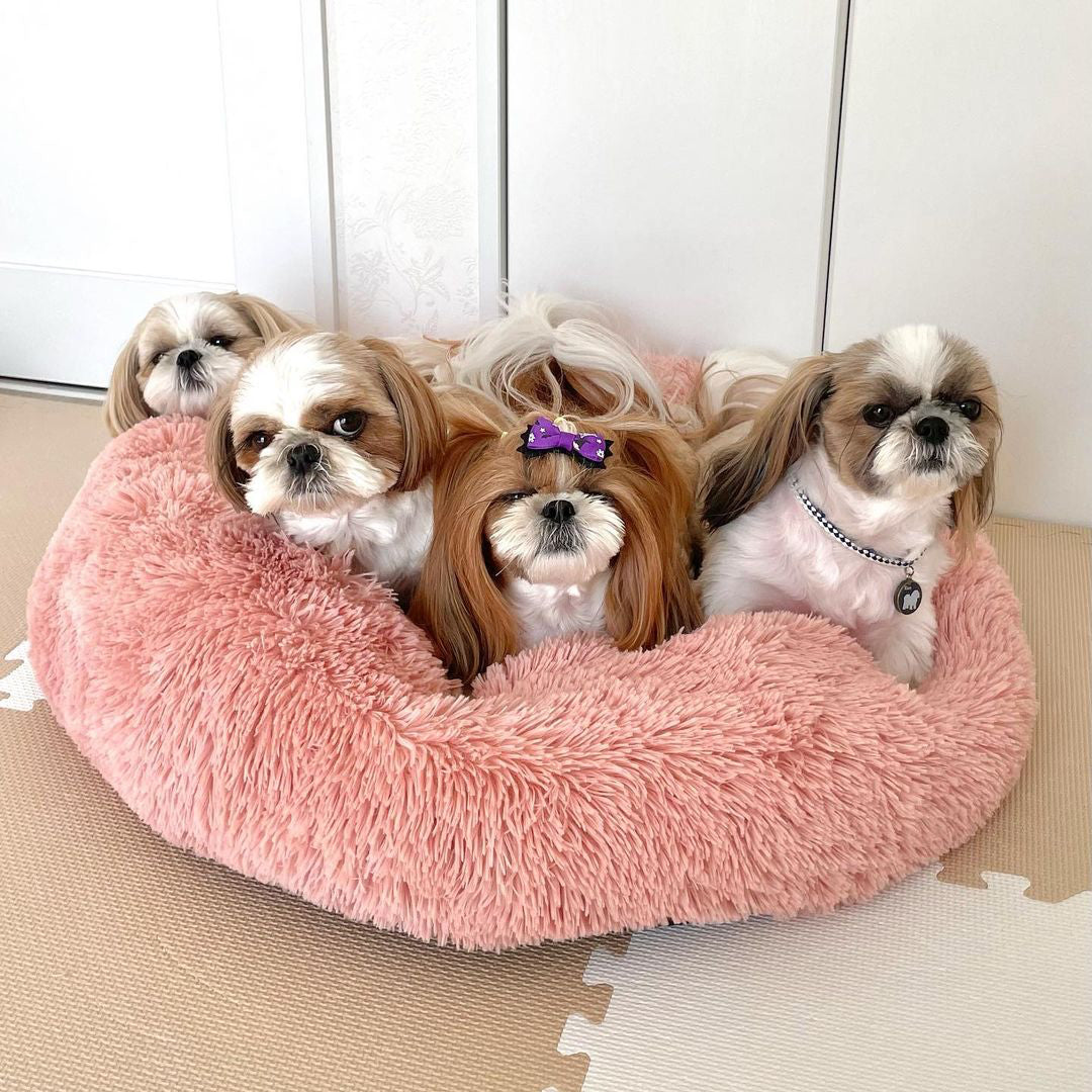 @pettijapan さんからふわふわベッドが届きました💕あったかくてとっても気持ちよさそう😳✨おはなちゃんもとっても居心地がいいみたいでなんだかうっとりしちゃってますね💖大きい方がくつろげるかなあ?と思ったのでピンクのMサイズをお願いしました✨